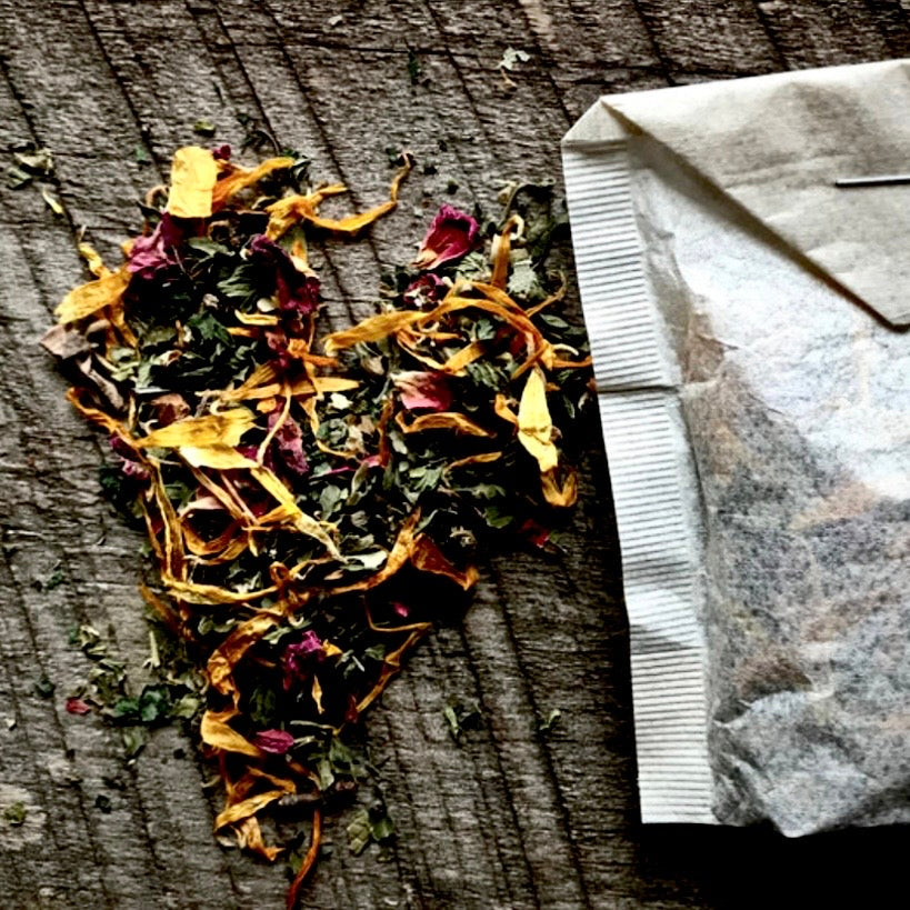Our unbleached tea bags are sealed with a food grade staple and no chemical sealant. Each is compostable, as well as the herbs inside, once staple is removed. They love to return to the earth.