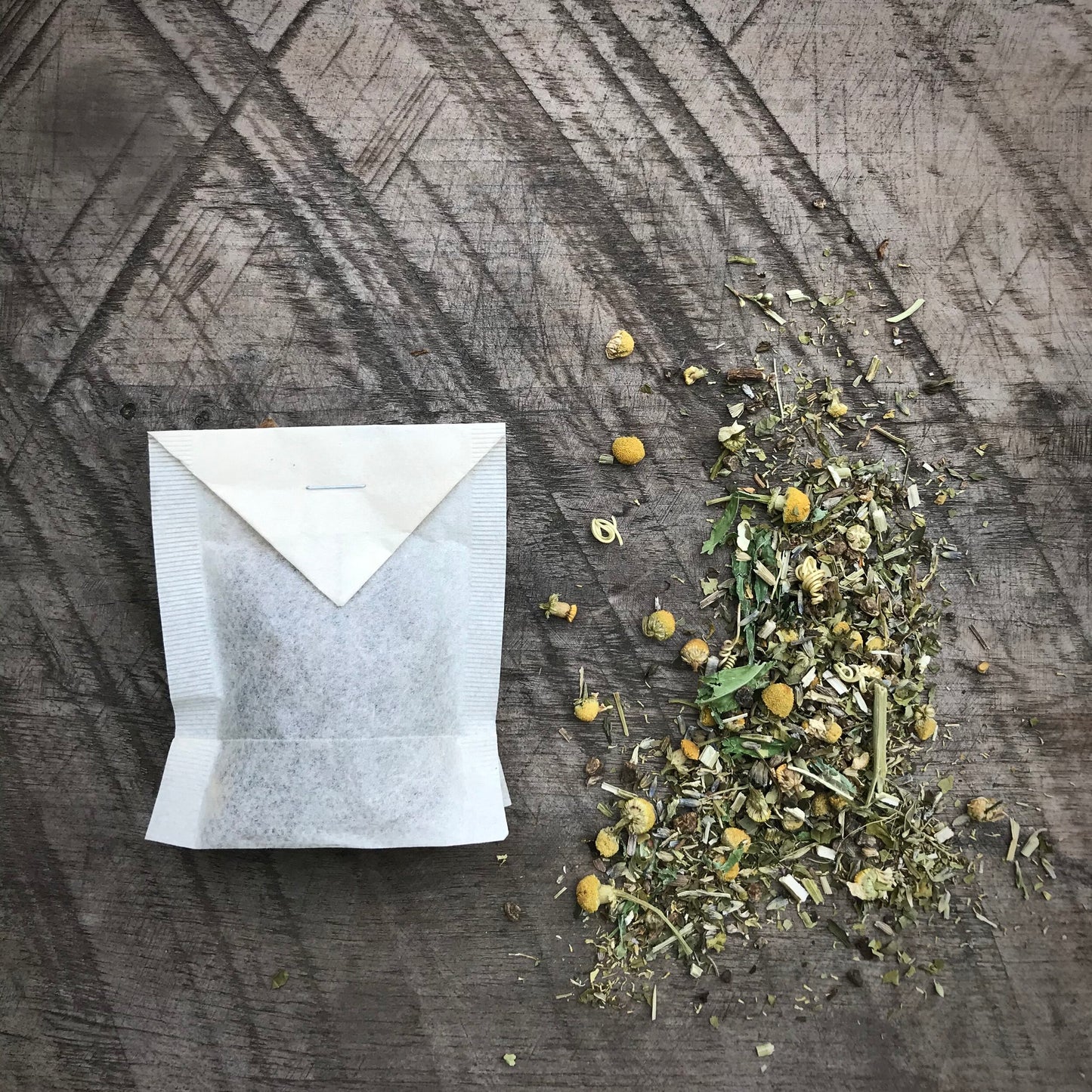 Our unbleached tea bags are sealed with a food grade staple and no chemical sealant. Each is compostable, as well as the herbs inside, once staple is removed. They love to return to the earth.
