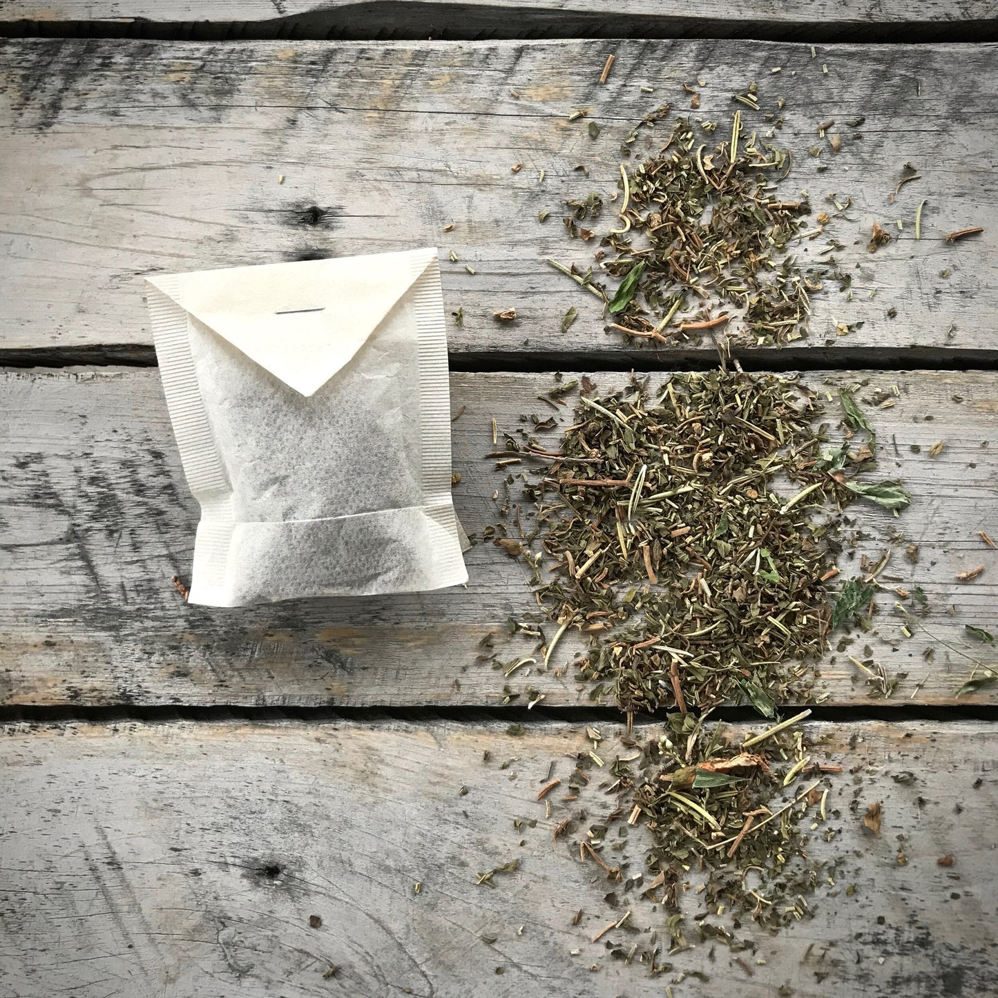 Our unbleached tea bags are sealed with a food grade staple and no chemical sealant. Each is compostable, as well as the herbs inside, once staple is removed. They love to return to the earth.