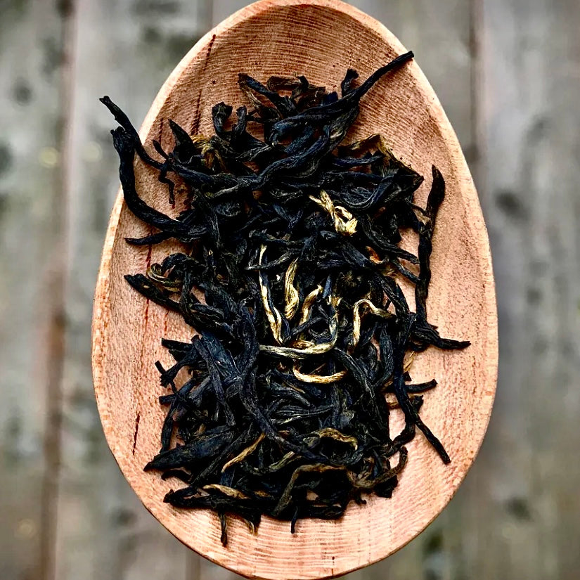 The small black and gold twisted leaves resemble little monkey paws, if you use your imagination, and brew up into a rich, smooth, earthy, quintessential Chinese black tea with obvious cocoa notes.