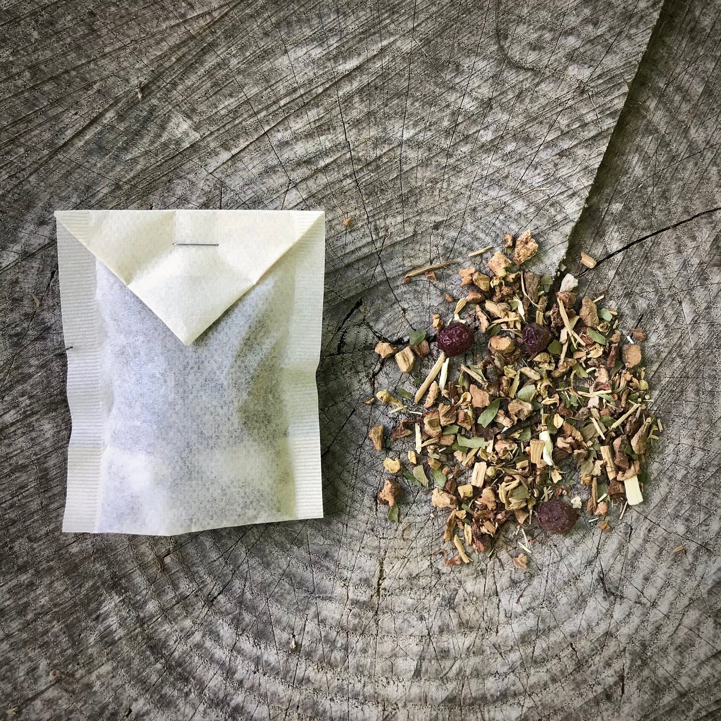 Our unbleached tea bags are sealed with a food grade staple and no chemical sealant. Each is compostable, as well as the herbs inside, once staple is removed. They love to return to the earth.