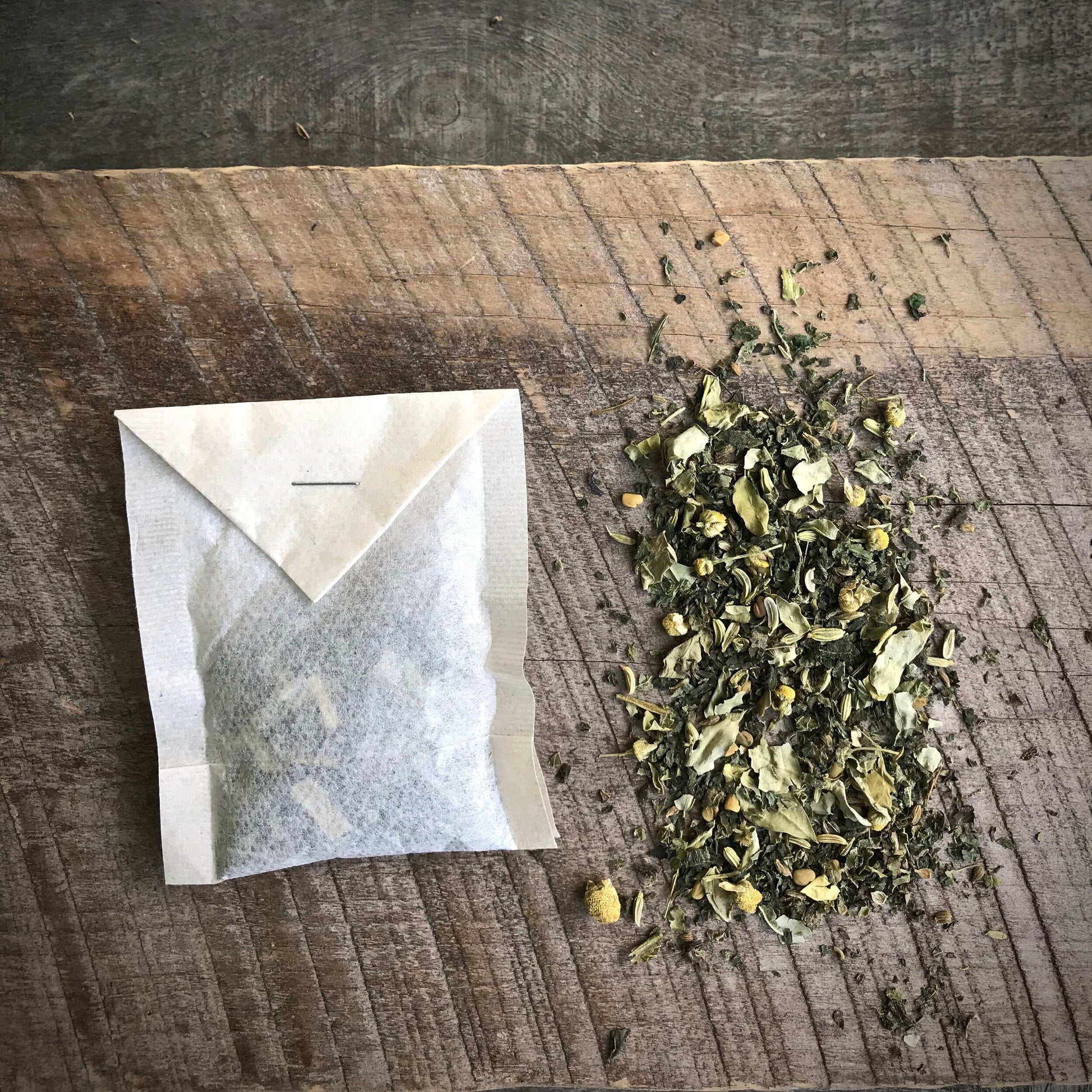 Our unbleached tea bags are sealed with a food grade staple and no chemical sealant. Each is compostable, as well as the herbs inside, once staple is removed. They love to return to the earth.