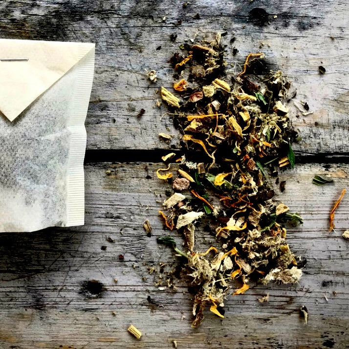 Our unbleached tea bags are sealed with a food grade staple and no chemical sealant. Each is compostable, as well as the herbs inside, once staple is removed. They love to return to the earth.
